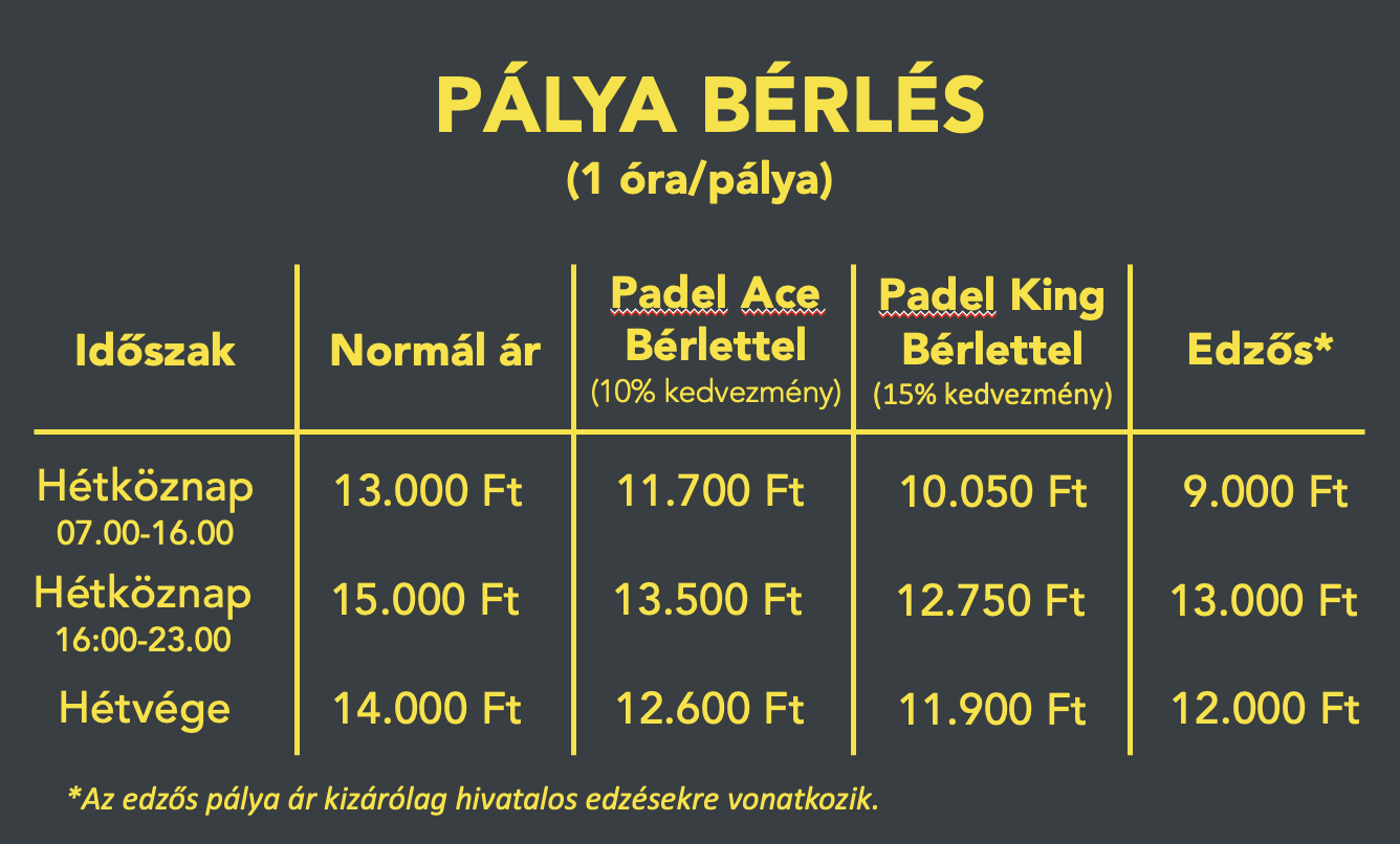 Rendszeres , fix időpontra történő foglalás kizárólag Padel ACE/KING bérletekkel lehetséges!